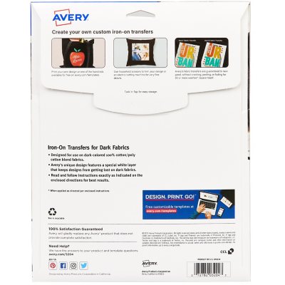 Fabric Transfers For Dark Fabrics 8 1 2 X 11 Inkjet Printer 5 Matte Sheets 3279 Avery Com